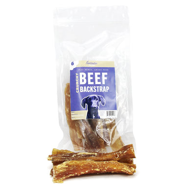 Ingredients: 100% Beef Backstrap (muscle) Chew Time: Moderate Description: Made of strips of firm and crunchy baked beef backstraps with a variety ...